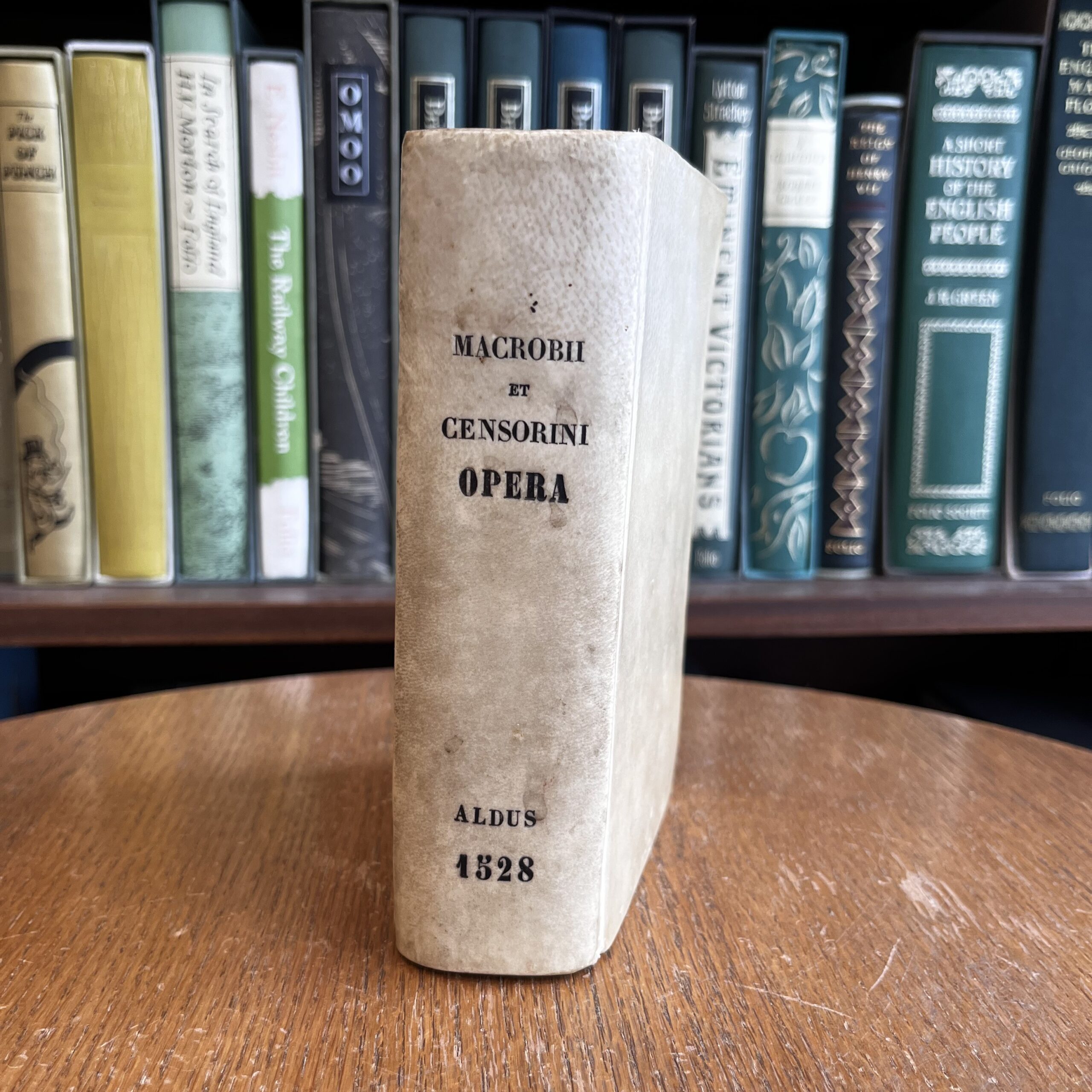 Macrobius [Macrobii]. In Somnium Scipionis ex Ciceronis VI Libro de Rep. Eruditissima explanatio. Eiusdem Saturnaliorum VII. Censoribus De die natali, additis ex vetusto exemplari nonnullis, que desiderabantur. Venice [Venetiis]: in Aedibus aldi et Andreaz Asulani Soceri [Aldus, Aldine]