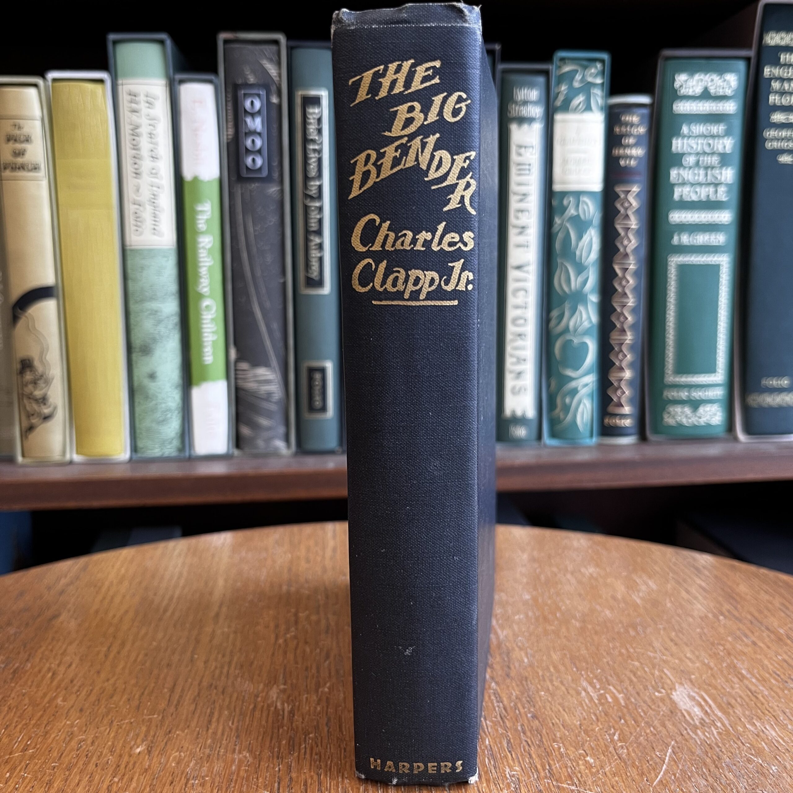 Clapp, Charles . The Big Bender. New York: Harper & Brothers Publishers, 1938. First edition. pp. vii, 171. 8vo. Black cloth with gilt lettering to spine. With drawings by Oscar Howard. Minor scuffing to edges, ink name, offsetting to rear endpaper (from glue used in production). Lacks jacket.