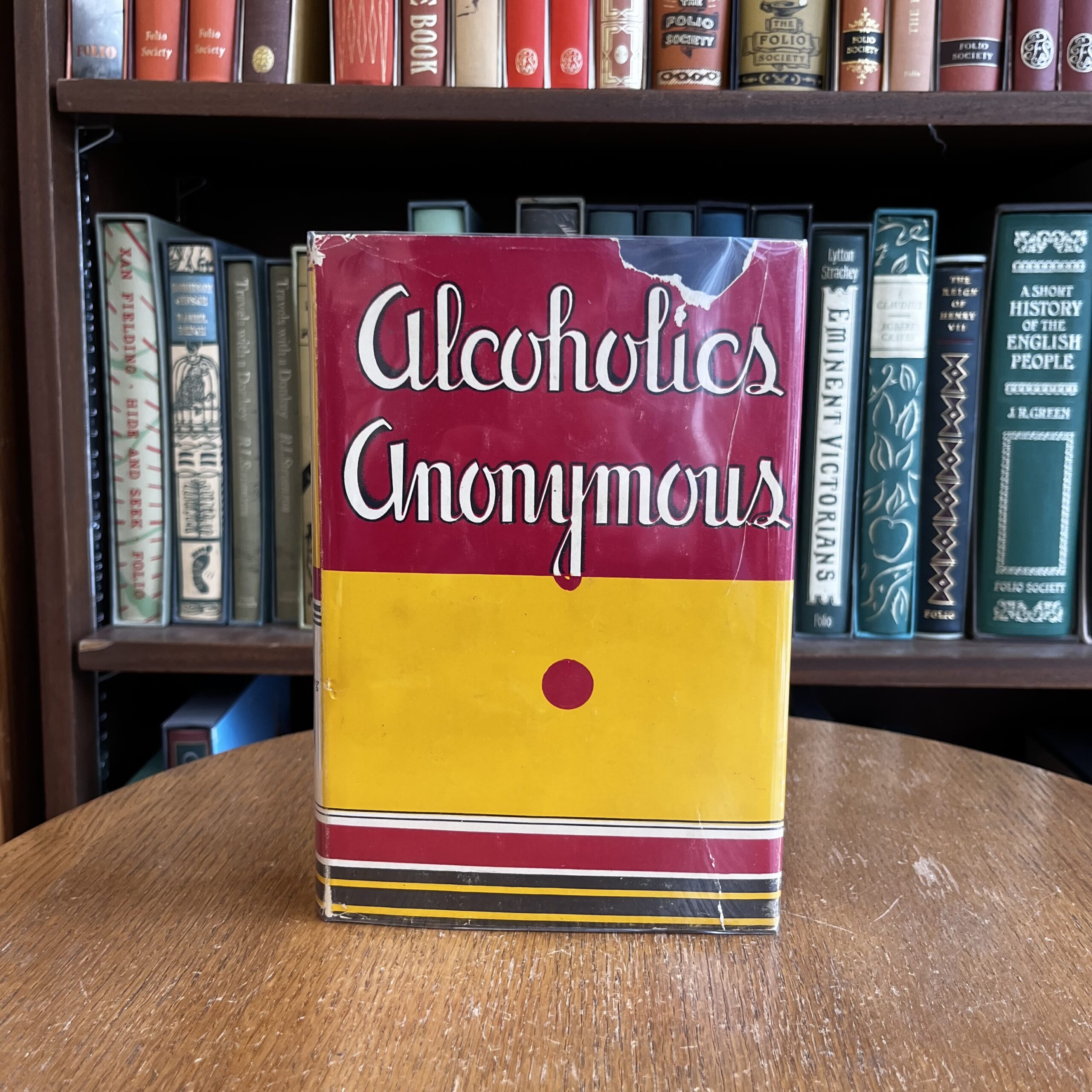 Wilson, Bill [Alcoholics Anonymous]. Alcoholics Anonymous The Story of How Many Thousands of Men and Women Have Recovered from Alcoholism. New York: Works Publishing Inc., 1950. 13th printing. pp. viii, 400. 8vo. Navy cloth with gilt lettering to spine. Rear board bumped at bottom edge, surface creasing to cloth over spine, internally clean and crisp. Dustjacket shows a one-inch open tear to top edge of front panel, two closed tears, small chips to edges, some general rubbing and age-toning.