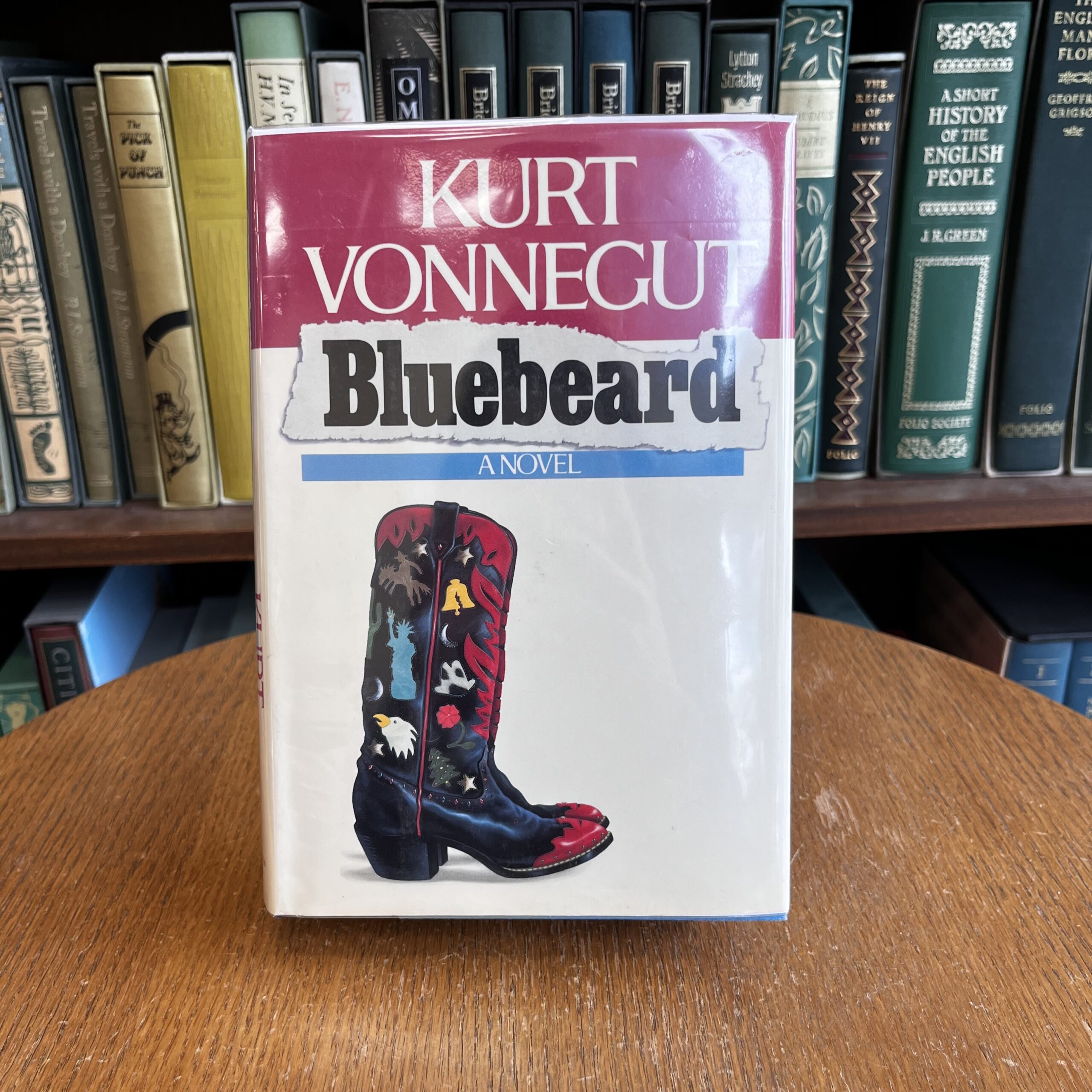 Vonnegut, Kurt. Bluebeard. New York: Delacorte Press, 1987. 8vo. Bound in 1/4 black cloth over blue boards with gilt lettering and decoration. Light shelfwear, slight spine slant; very good. Unclipped dustjacket shows a few faint spots, else clean and bright.