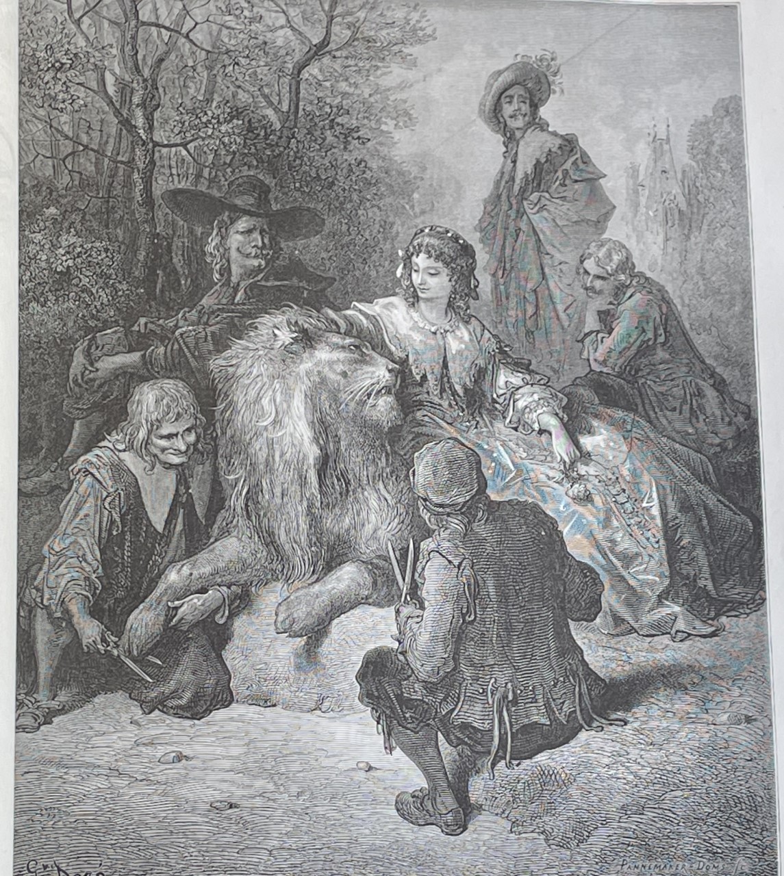 La Fontaine’s famous classic fables are herein lavishly illustrated with Gustav Doré full-page plates, many in-text illustrations, head- and tail-pieces. All this housed in a handsome and solid leather binding. Text is in French. (#035028) $400.00