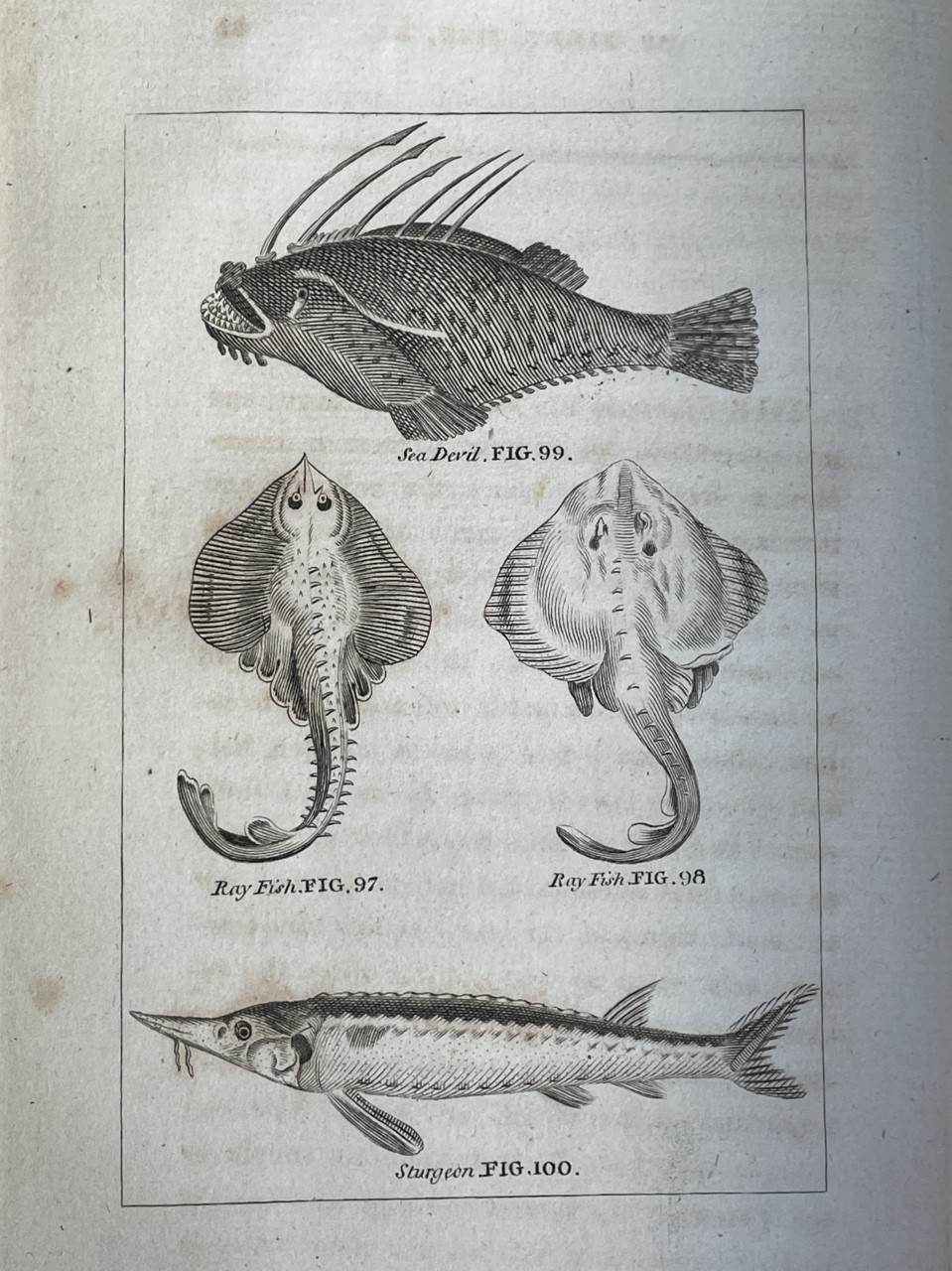 Leclerc, Georges-Louis; Comte de Buffon. Buffon’s Natural History Of Birds, Fish, Insects, and Reptiles (Six volumes bound in three). London: Sherwood, Neely, and Jones, 1816. pp. vii, 332; v, 332; viii, 320; viii, 323; vii, 386; xii, 332. Thick 8vo. Bound in half green leather over marbled boards with gilt lettering, rules, and decoration to spines, five raised bands and six compartments. Black and white engraved plates, marbled page edges and endpapers. One plate missing from volume three, edgewear, occasional foxing, a few pencil marks to margins, shelfwear; very good-. Leather Bound.