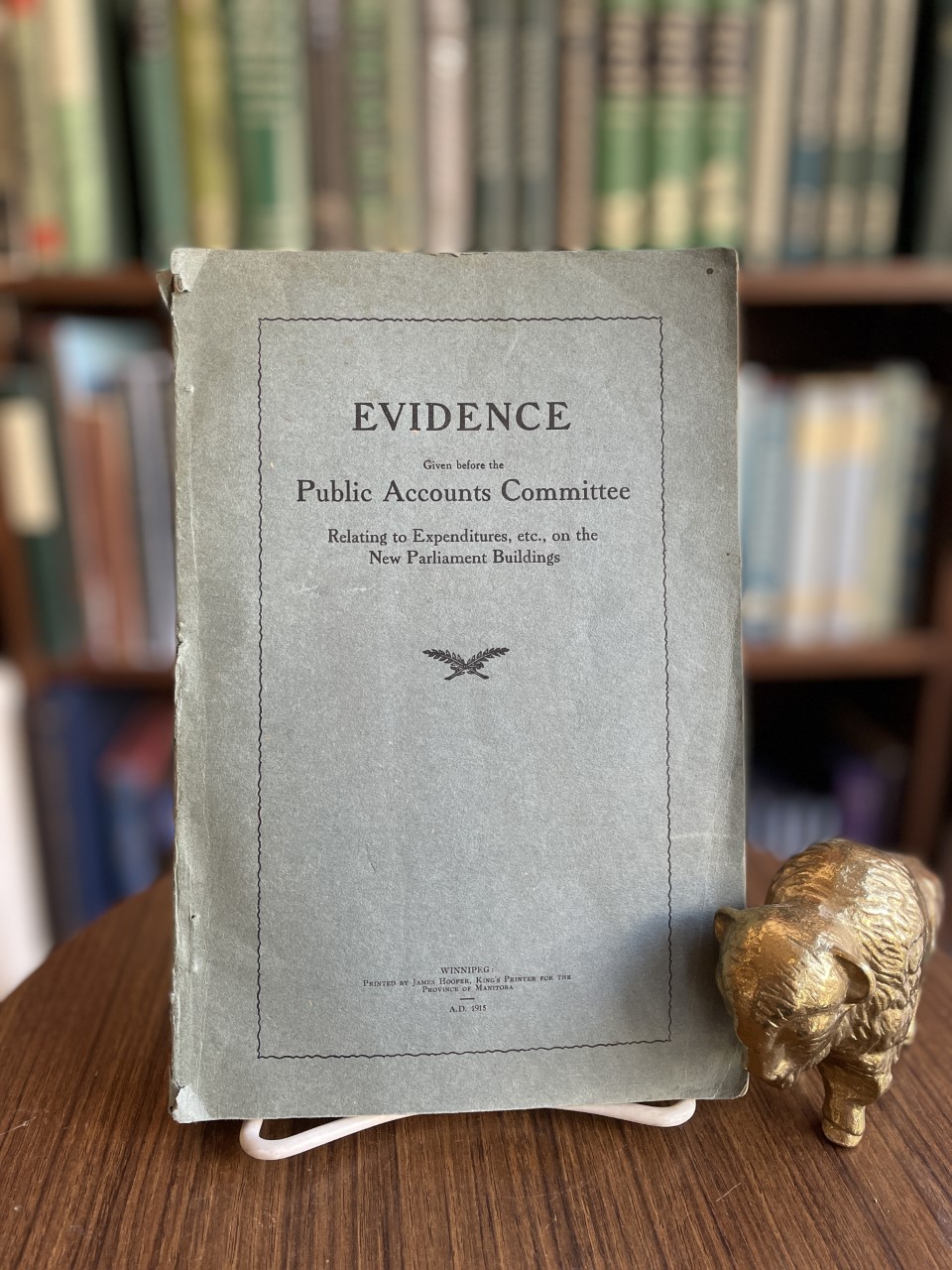 The Manitoba Legislative building, originally called the Manitoba Parliament Building, has a controversial, mysterious history, quite aside from the rumoured Masonic connections, the building went over budget by nearly 500%. “Construction began in the summer of 1913. The work suffered setbacks and would take almost 7 years to complete. Obstacles included labour and funding shortages connected with the First World War, a scandal involving the original contractor, a Royal Commission called to investigate the building’s construction, the subsequent resignation of a Premier and a change of government, and labour unrest during the Winnipeg General Strike… The Winnipeg Tribune, in 1917, argued that the new “government would have been well advised when it took office if it had caused the structure to be torn down, and a sensible building, commensurate with the requirements of the province substituted… Final costs were $9,379,000. [vs. a planned expenditure of $2,000,000.] An itemized statement issued by the Public Works department included $150,000.00 for furnishings and finishings, $219,551.29 for plumbing, heating and ventilation, $157,172.72 for electrical work and $296,023.59 for repairing defective work.” – https://gov.mb.ca/legislature/education/pdf/100_facts_mbleg.pdf . This book consists of transcripts of examinations of figures involved in planning and building.