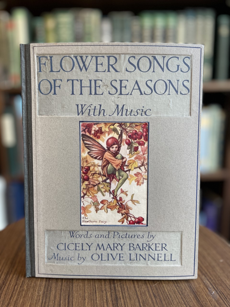 Barker, Cicely Mary; Olive Linnell. Flower Songs of the Seasons. London: Blackie & Son Limited, N.D. [ca. 1930]. Unpaginated. 4to. Illustrated plate to front board. Tipped-in colour plates and frontispiece, black and white illustrations. Light shelfwear; very good. Hardcover.
